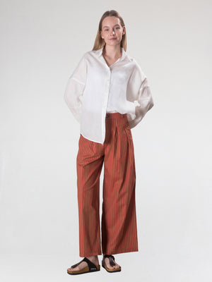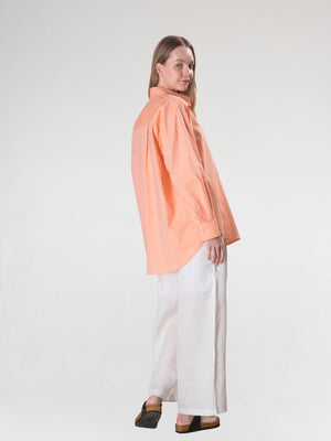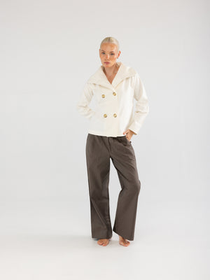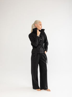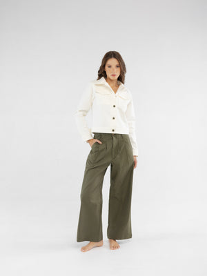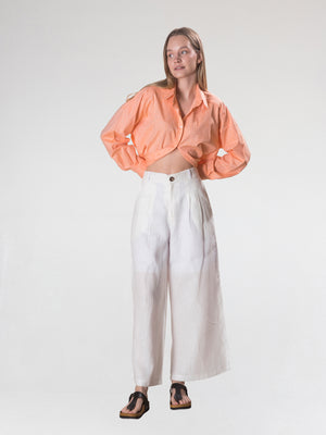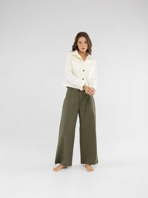 Seçilen her kumaş; nefes alabilen, hafif ve doğaya saygılı yapısıyla koleksiyonun ruhunu yansıtır. Ketenin zarif dokusu, yalınlığı estetikle buluşturur.