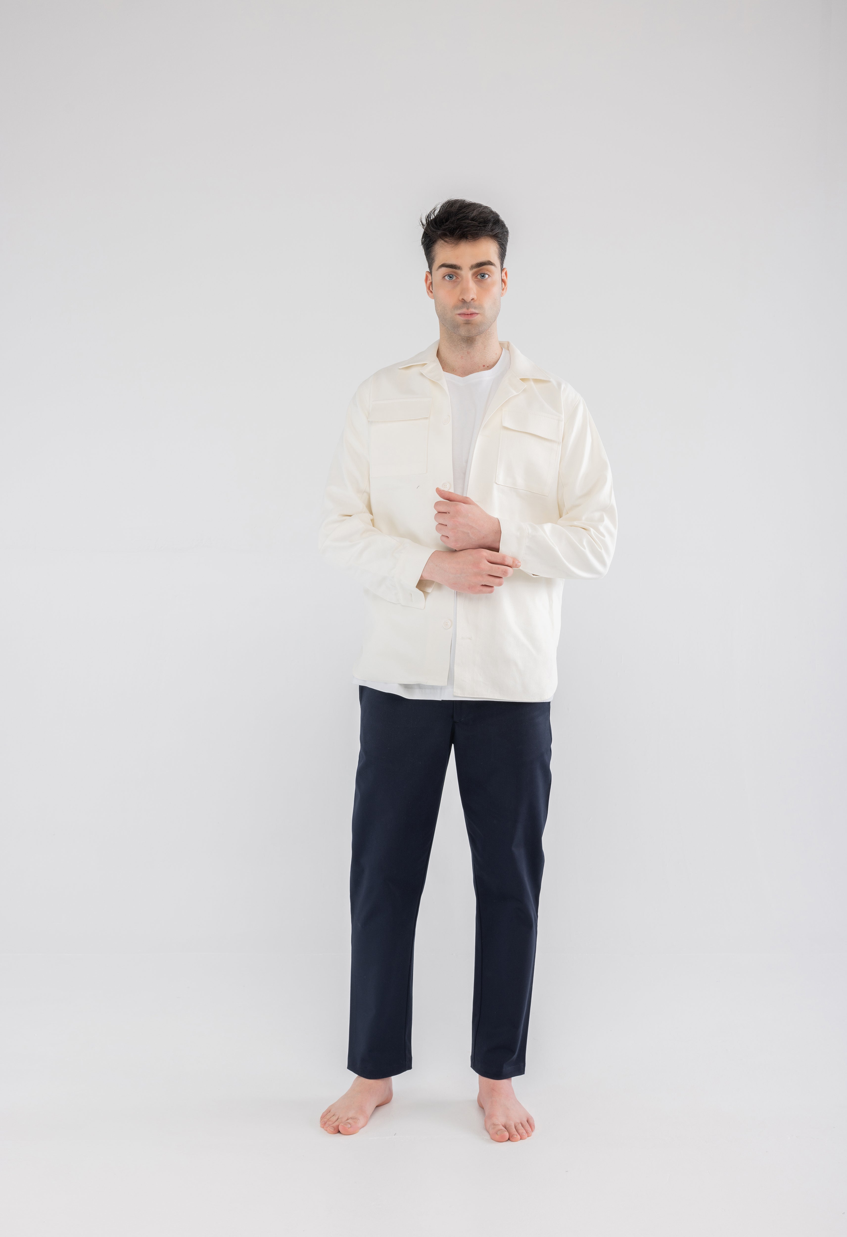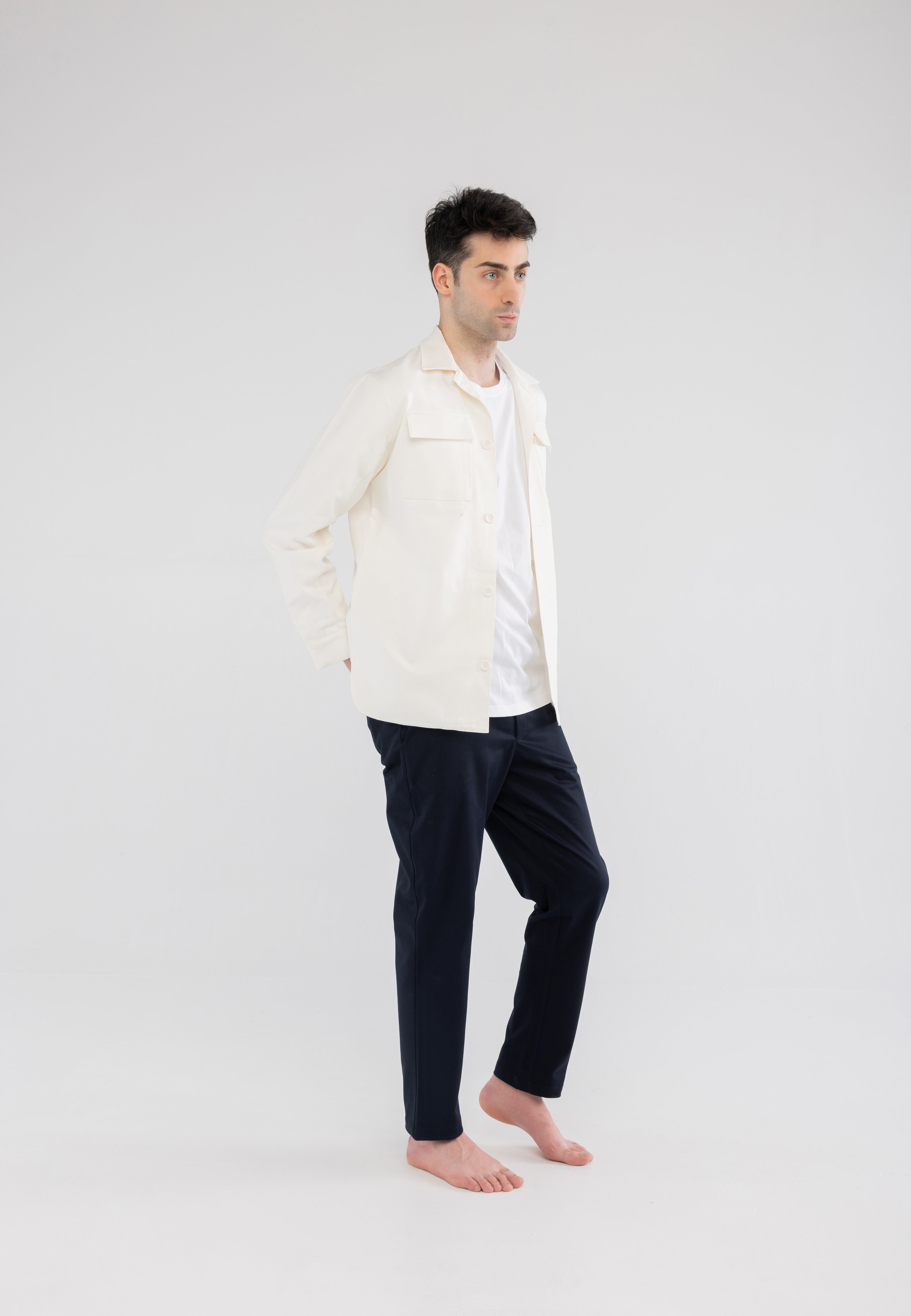 Klasik bir kesimi modern detaylarla yorumlayan bu krem rengi ceket, %100 pamuk gabardin kumaştan üretilmiştir. Doğal sertlikteki gabardin dokusu formunu korurken, pamuk astarı sayesinde nefes alabilir ve konforlu bir kullanım sunar. Göğüs cepleri ve iç cep detayıyla fonksiyonel bir yapıya sahiptir. Şehir yaşamı ve hafta sonu stilleri için sade ama güçlü bir tamamlayıcıdır.