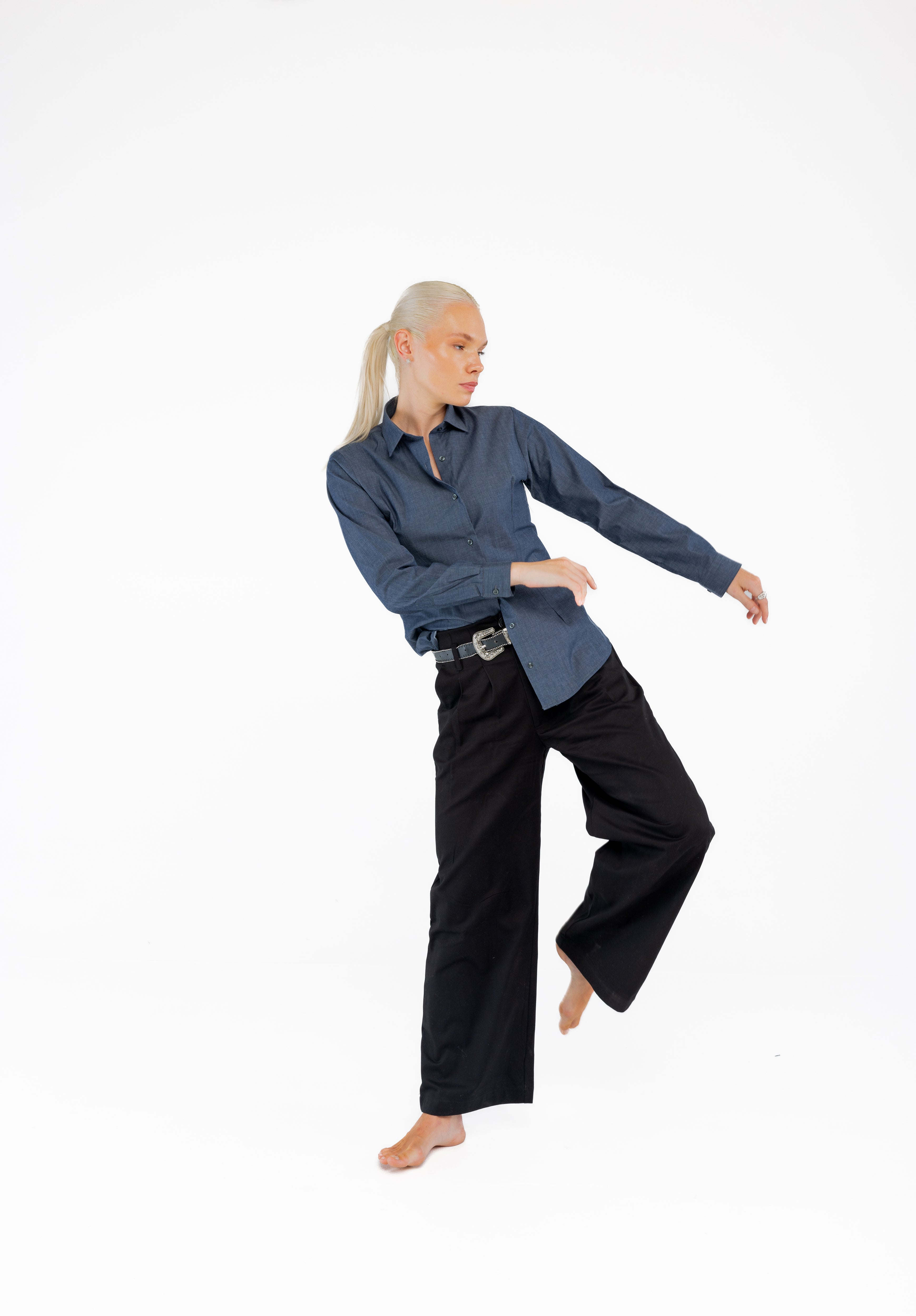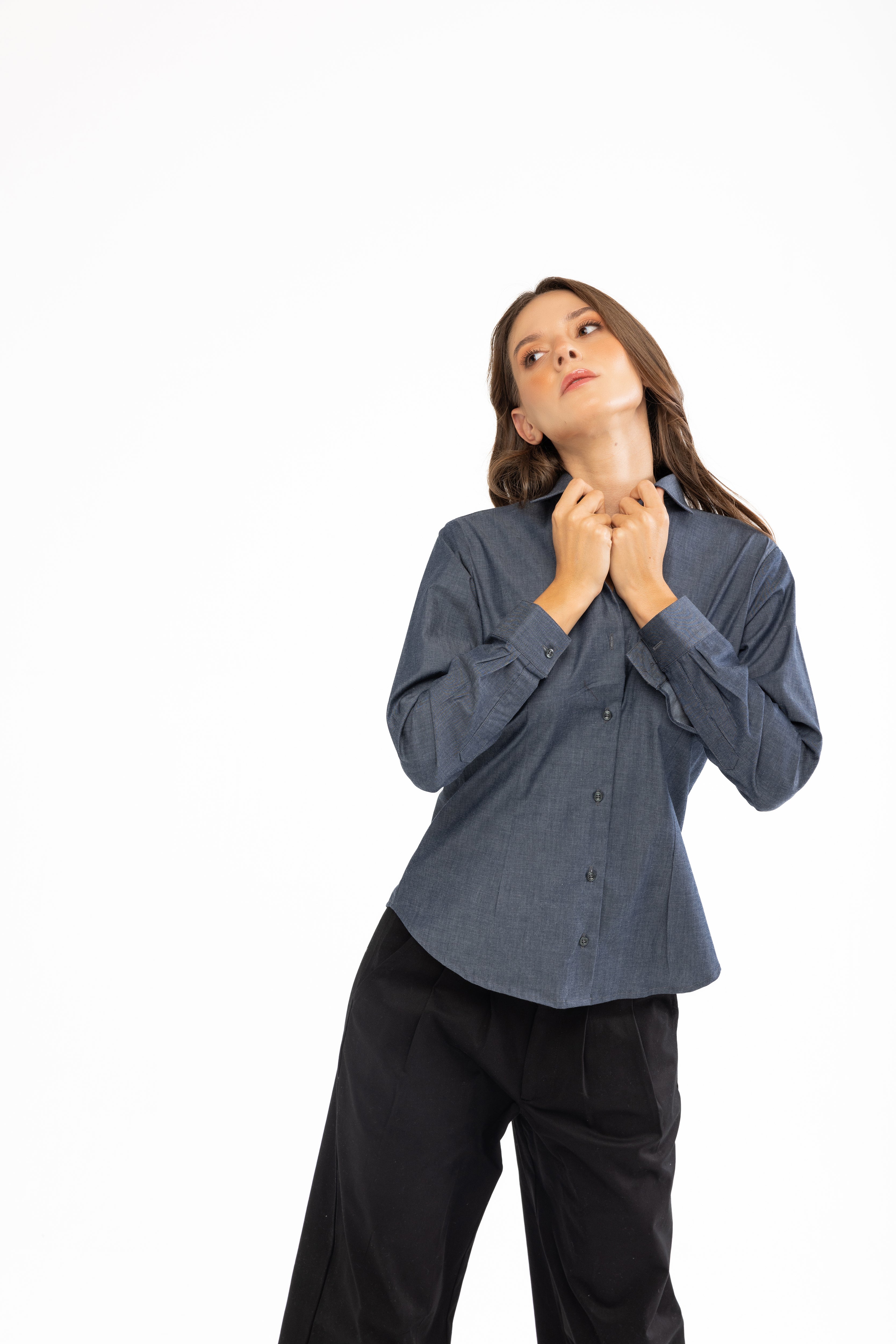 Pamuk Slim Fit Kadın İndigo Gömlek